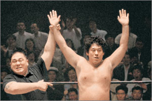 이 영화는 주인공 역도산을 비교적 빨리 성공의 정점에 올려놓는다. 그럼으로써 영웅의 추락을 길고도 깊은 호흡으로 바라볼 시간적 여유를 확보하려 든다. 문제는 여기서 시작된다. 주제의식이 깊어질수록, 이 영화는 중반까지 한껏 벌려놓았던 스케일에 훌쩍 올라타지 못하고 반대로 그 스케일에 대해 스스로 결별을 선언해 버리는, 강박에 가까운 자기절제를 드러내는 것이다. 이는 역도산이 마지막 경기에서 피를 철철 흘리며 쓰러지는데도, 그 감동이 왠지 ‘짠맛’이 부족하거나 아니면 감정이입이 다소 어렵게 느껴지는 이유가 된다. 더 손에 땀을 쥐게 할 수 있었고 더 안타깝게 만들 수 있었지만, 영화는 관객의 감정 곡선을 끌어올린 뒤 끝장을 보는 대신 차갑게 ‘이제 그만’이라고 한다.