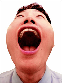백과사전을 찾아보니 웃음은 ‘횡격막의 짧은 단속적(斷續的)인 경련적 수축을 수반하는 깊은 흡기(吸氣)로부터 생긴다’고 되어 있다. 웃음을 유발하기 위해 일부러 이렇게 적어놓은 것은 아니겠지만 이런 게 웃음을 이끌어내는 장치다. 곧이곧대로 밀어붙이는 이 경직성! 그것이 바로 웃음의 원천이 아닐까.