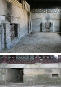 노 장인은 대뜸 “구새를 한번 찾아보라”며 깜짝 퀴즈를 냈다. 하지만 가로 세로 1m, 깊이 5m가량의 큼지막한 아궁이는 보이지만 구새 닮은 것은 어디에도 없었다. 얼마 뒤 그는 아궁이 옆의 작은 사각 구멍을 가리켰다. 아궁이에서 출발한 불길이 바닥을 돈 뒤 바로 옆으로 빠져 나올 수 있도록 고래가 만들어진, 이른바 ‘되돈 고래구들’이다. 전남 화순군 등에서 이따금 발견되지만 궁궐에서는 희귀한 양식이다.