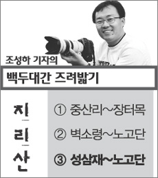 관광도로가 지나는 성삼재를 출발해 백두대간의 마루금 밟으며 노고단에 올라 자연과 한데 어울리는 상생의 길을 찾는 것도 의미가 있어 ‘백두대간 즈려밟기’에 굳이 성삼재∼노고단 코스를 포함시켰다.