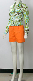 녹색 실크 셔츠형 꽃무늬 블라우스(‘나인식스뉴욕’)와 주황색 핫팬츠(‘라우렐’)의 조합은 발랄하고 상큼하다.