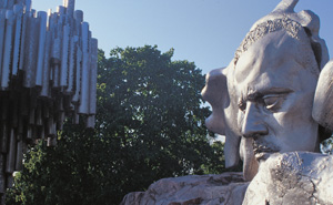 알토가 설계한 헬싱키의 명소 핀란디아 홀에서 서북쪽으로 500m 정도 떨어진 호숫가의 시벨리우스 공원으로 향한다. 시벨리우스 기념상은 핀란드 최고의 여류 조각가 엘리아 훌티넨이 시벨리우스 사후 10주년을 기념하여 1967년에 제작한 것으로, 그 작품 속에서 엄정한 표현력과 독창성을 엿볼 수 있다. 이 철제 조각은 전나무와 자작나무 숲으로 이루어진 북유럽 특유의 대자연의 일부처럼 느껴진다. 특히 파이프 오르간을 연상하게 하는 그 형상은 시벨리우스의 음향의 세계로 인도해 주는 듯하다.