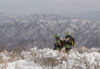 최근 내린 폭설로 설국을 이룬 덕유산 산정은 하나의 별세계였다. 가지에 붙은 눈은 강풍과 혹한에 그대로 얼어붙어 숲은 온통 ‘얼음나무’ 천지였다. 그 얼음가지가 바람이 흔들리며 서로 부딪쳐 내는 소리, 얼음나무 숲 위로 떨어져 부서지는 찬란한 햇빛은 꿈속 세계처럼 환상적이었다. 산이 아니라면, 아니 덕유산이 아니라면 도저히 보여줄 수 없는 아름다운 산경이다.