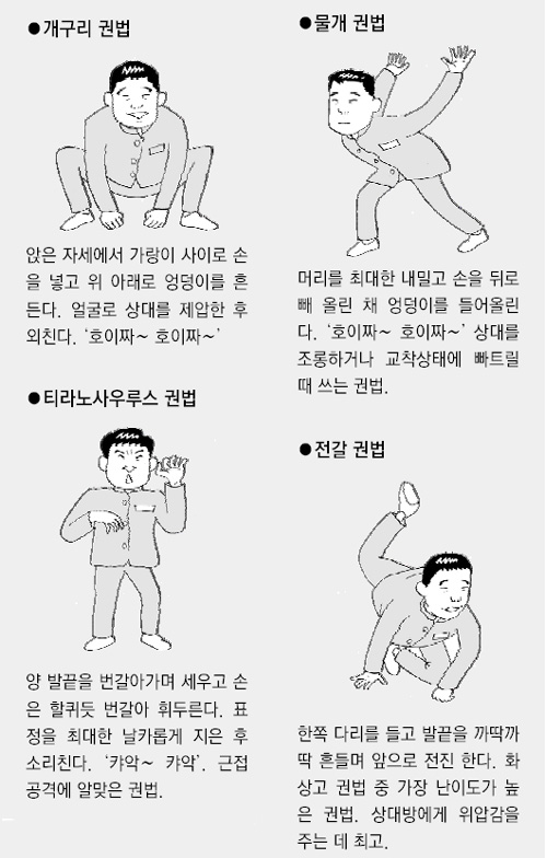 이들은 시간 날 때마다 동물원에 간다. 또 동물 동호회 인터넷 홈페이지나 동물 울음소리를 들을 수 있는 사이트를 방문한다. 이런 치밀한 관찰을 통해 그들의 개구리 권법, 비둘기 뒷다리 권법 등이 탄생하는 셈이다.