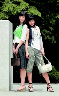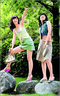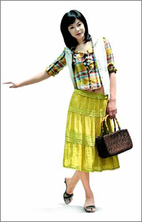 파스텔 톤의 란제리 톱과 민트색 미니 스커트(베네통) 위에는 경쾌한 노란색 니트 소재 랩 스타일 조끼(온 앤 온)를 입어 여성미를 한껏 강조한다.