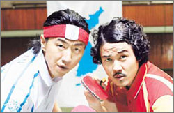 이 장면 탁구 실력 없는 두 아들이 보이지 않는 공으로 탁구를 하는 묘기(?).