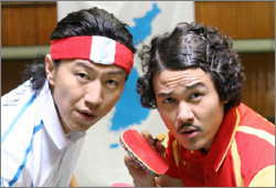 이 장면 탁구 실력 없는 두 아들이 보이지 않는 공으로 탁구를 하는 묘기(?).