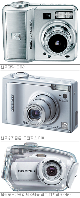 디지털 카메라 업체들은 여름철 성수기를 맞아 다양한 기능을 갖춘 신제품을 앞다퉈 내놓고 있다. 특히 장맛비를 맞아도 끄떡없고 물속에서도 원하는 사진을 찍을 수 있는 기능이 추가되고 있다.