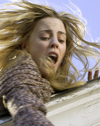 이 장면: 귀신을 피해 사다리를 내려오던 턴이 위를 쳐다 본 순간 귀신이 사다리에 거꾸로 매달려 쫓아온다.