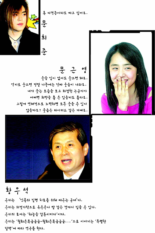 문근영 어록에는 우호적인 말들만 있는 반면 문희준 어록에는 “절 아티스트라 불러주세요” 등 그를 희화화 하는 말들이 대부분. 이는 댄스그룹 ‘H.O.T.’ 출신인 그가 록을 한다는 것에 대한 반감으로 해석된다. 그러나 문희준은 그런 말을 한 적이 없다고 밝혔다.