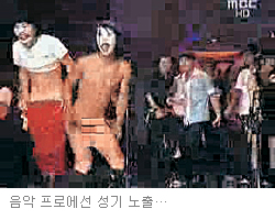 ▽빈번한 방송사고=지난달 30일 오후 방영된 MBC ‘음악캠프’ 생방송에서 퍼포먼스팀 멤버 2명이 바지를 내리고 춤을 춰 이들의 성기가 노출된 장면이 5초 동안 그대로 방영됐다. 이에 앞서 지난달 27일 KBS 2TV 시트콤 ‘올드미스 다이어리’에선 며느리가 손자를 제대로 돌보지 못했다며 시어머니의 뺨을 때리는 장면이 방송됐다.