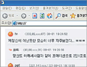 그러나 황은승(黃隱昇·27·여·대학원생) 씨는 “자유로운 의사 표현이 인터넷의 최고 장점”이라면서 “댓글난을 없애 의견 표명을 못하게 하는 것은 전자 민주주의 기본 정신에 맞지 않는다”고 주장했다.