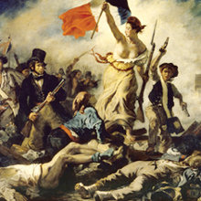 그것이 바로 ‘민중을 이끄는 자유의 여신’이다. 이 작품은 역사적 사실을 표현하면서도 철저하게 낭만적이다. 어둡고 무거운 배경과 밝게 빛나는 주인공의 색채 대비, 강렬하고 역동적인 여성의 몸짓, 가슴을 살짝 드러낸 여성의 관능미 등. 이런 점들은 투쟁의 역사를 그린 작품에서 찾아보기 어려웠던 새롭고 과감한 시도였다. 혁명의 정치적 의미보다 자유정신 그 자체를 찬미하려했던 들라크루아의 예술세계를 그대로 보여주는 것이다.