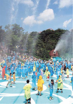 ::테마파크:: 한여름에 물벼락. 지나가는 행인에게 물을 퍼붓는 태국 송크란 축제를 연상케 하는 물벼락 이벤트 ‘서머 스플래시’가 에버랜드에서 매일 세 차례(9월 4일까지) 펼쳐진다. 5대의 플롯(화려한 장식을 갖춘 차)과 함께 나타난 환상적인 의상의 공연단과 캐릭터는 거리 쇼 도중 16대의 물대포와 92개의 물총으로 물을 뿜는다. 하늘로 솟구친 거대한 물줄기는 비가 되고 공연단과 관객들은 물총을 들고 서로를 향해 쏜다.