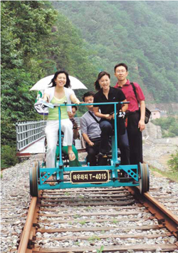 ▽정선 레일바이크 △찾아가기=영동고속도로∼진부 나들목∼59번 국도∼42번 국도∼아우라지∼송천∼구절리역 △요금=2인승 1만5000원, 4인승 2만 원. 033-563-8787 △패키지=‘정선오지투어+레일바이크+옥산장(1박)+기차왕복’, 연중 화 토요일 출발(청량리역). 승우여행사(www.swtour.co.kr) 02-720-8311