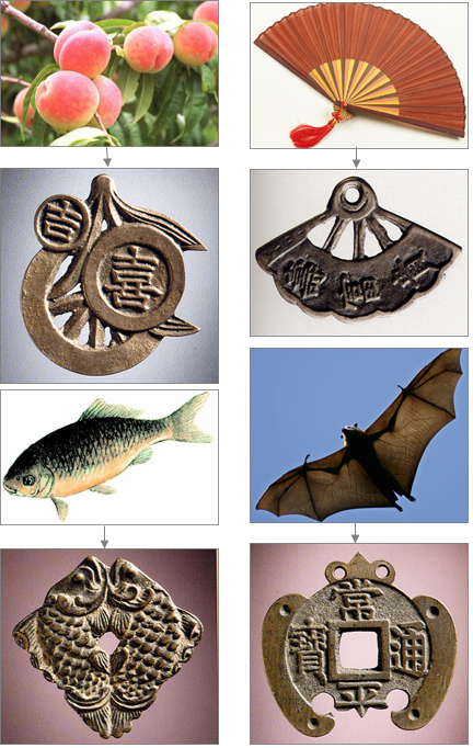 별전의 특징은 다양한 형식과 풍부한 상징성. 별전에 등장하는 다양한 동식물은 모두 장수(長壽)와 행복, 자손의 번창을 상징한다. 세련된 디자인도 빼놓을 수 없다. 둥근 상평통보 주변에 박쥐 모양을 덧붙인 것, 물고기 두 마리를 대칭으로 표현한 것, 복숭아 모양을 한 것 등 뛰어난 조형미를 보여주는 것들이 많다.