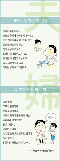 아내 마음 몰라주는 남편 얘기에 내가 해당되는 사항도 많다. 우리 집 두 아들 역시 틈만 나면 몸종처럼 제 엄마를 찾는다. 나도 그러면서 자식이 그러는 건 못 봐준다.