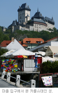 ○카를슈테인 성=1375년 카를 4세가 세운 성으로 왕의 휘장, 보석, 유물을 보관한 ‘보물의 성’이자 역대 왕들이 여름 궁전으로 사용했던 곳이다. 보물창고답게 가파른 벼랑 위에 아슬아슬하게 세워졌다. 성 내부는 관람권을 사서 가이드와 함께 가야 볼 수 있다. 안에는 수십 개의 방이 있는데 방마다 가이드가 관광객을 모두 들어오게 한 뒤 문을 잠그고 설명한다. 보물을 지키기 위한 방안이다. 왕이 머물던 ‘황제의 방’ ‘왕의 게임방’ ‘귀빈실’ 등이 볼 만하다. 화장실 밑바닥이 뚫려 있어 오물이 성 바깥 어딘가에 떨어진다는 점이 흥미롭다. 프라하 중앙역에서 1시간 간격으로 출발, 45분 소요. 월요일 쉼.
