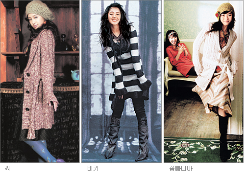 ‘비키’의 이선화 디자인 실장은 “무릎까지 내려오는 티어드 스커트(층층이 천을 이은 스커트)에 헐렁한 셔츠, 롱 니트 카디건을 입은 뒤 폭이 넓고 굵은 와이드 벨트를 매라”고 조언했다.