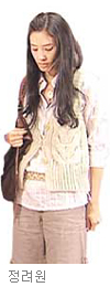 2005년 패셔니스타(fashionista·패션 감각이 탁월한 사람)로 평가받는 탤런트 정려원은 MBC TV 드라마 ‘가을 소나기’에서 니트 조끼를 이용한 ‘믹스 앤드 매치’를 보여줬다.