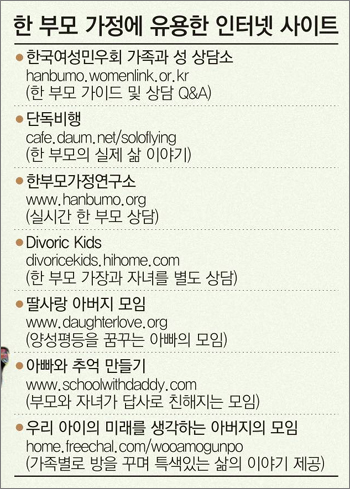 서울 강북구 미아동 송중초등학교 황미섭(黃美燮·37·여) 교사는 “요즘은 많으면 한 반에 7, 8명이 ‘한 부모 자녀’인데도 이들에 대한 지도법이 교사의 자율적인 판단에 맡겨져 있다”며 “교과과정에 가족과 관련된 내용도 적지 않은 만큼 정부 차원의 연구와 대책이 필요하다”고 말했다.