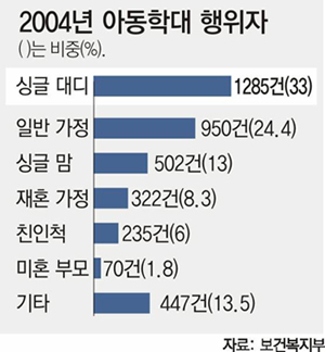 보건복지부가 지난해 확인한 아동 학대는 모두 3891건. 이 가운데 가장 많은 1285건이 싱글 대디에 의한 것으로 조사됐다.