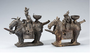 ▽국보 91호 기마인물형토기(말탄 사람 토기·신라 6세기)는 왜 두 개인가?=경주의 금령총에서 발굴된 것. 죽은 자가 말을 타고 무사히 저승에 도착하길 바라는 뜻이 담겨 있다. 눈여겨보면 하나는 크고 하나는 작다. 큰 것은 장식이 화려하고 작은 것은 장식이 단순하다. 큰 것은 무덤의 주인공(왕 또는 왕족)을, 작은 것은 하인을 표현한 것.