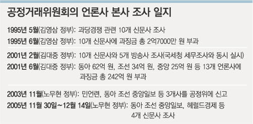 공정위의 이번 조사가 정권에 비판적인 신문사에 초점이 맞춰져 있다는 점에서 김대중(金大中) 정부 때 실시한 일제 조사의 재판이 아니냐는 우려도 나온다.