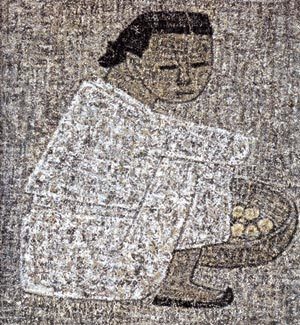 개인 소장자가 내놓은 ‘시장의 여인’은 노점상을 하는 여인의 모습을 그린 1960년대 작품으로 뒷면에 연필로 서명이 돼 있다.