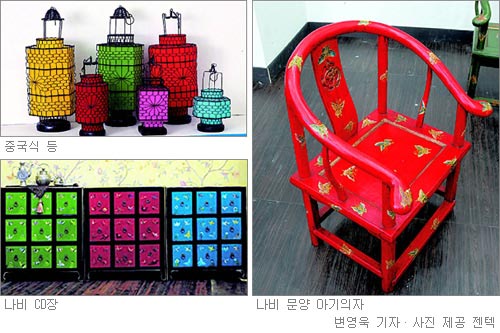 중국 현지 가정에서 쓰던 것을 옮겨놓은 듯한 분위기를 자아내는 가구들이 인기다. 40∼50년의 세월을 거친 듯 문양이 오래되고 흠집도 다소 있는 게 더 비싸다. 이 때문에 중국이나 티베트의 가정에서 사용하던 중고 제품도 수입된다고 한다. 그러나 업계에 따르면 ‘진짜’ 중고보다 오래된 듯한 분위기를 풍기는 신제품이 더 인기가 좋다.
