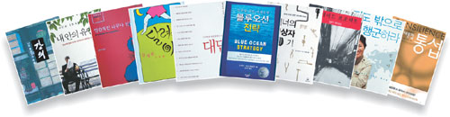 ◇ 블루오션 전략(김위찬, 르네 마보안 지음·강혜구 옮김·교보문고) 블루오션은 가치 혁신을 통해 새롭게 창출해 낸 무한 잠재력의 시장. 반면 레드오션은 한정된 자원을 놓고 경쟁자들이 치열한 싸움을 벌이는 시장이다. 블루오션 전략가들은 경쟁자를 이기는 데 집중하지 않는다. 그 대신 새로운 시장을 창출해 내 경쟁 자체에서 벗어난다. 올해 기업과 최고경영자(CEO)들의 화두는 단연 ‘블루오션’이었다. 경제경영서로는 드물게 출간 즉시 전체 베스트셀러 1위에 오른 뒤 하반기까지도 독서시장을 주도했다.