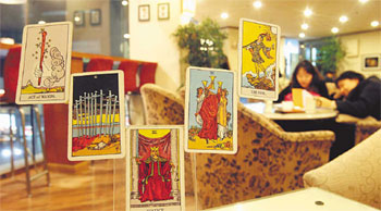 12개 테이블 중 손님이 앉은 곳은 7개. 연인으로 보이는 한 커플을 제외하면 모두 20, 30대 여성들이다. 역술가들과 점을 보는 손님들이 앉은 세 테이블을 제외하면 다른 곳은 손님끼리 대화를 나누고 있어 여느 카페와 크게 다르지 않다.