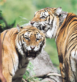 험악한 곰을 주인공으로 한 휴먼 드라마 ‘베어’를 만든 장 자크 아노 감독의 신작이다. 곰뿐 아니라 문명이전 인간을 다룬 ‘불을 찾아서’ 등을 통해 언어 이전에 감정을 지닌 존재들을 다루는 데 일가견을 인정받은 감독이 이번에는 쌍둥이 호랑이 형제를 주인공으로 이들의 가슴 따뜻한 인생(?) 역정을 담았다. 동물들이 만든 상황을 따라간 게 아니라 ‘에너미 앳 더 게이트’의 각본을 쓴 알랭 고다르가 만든 시나리오에 따라 동물들의 연기를 이끌어 냈다는 점이 놀랍다. 세계 40여 마리 호랑이들을 대상으로 오디션을 해 어린 시절과 어른 모습을 연기할 22마리를 캐스팅했다고 한다. 새끼 시절 인간에 의해 생이별하게 된 쌍둥이 호랑이 형제가 어른이 된 뒤 한 마리는 서커스단에서 소심한 겁쟁이로, 다른 한 마리는 고독한 독방에서 사나운 맹수가 되어 재회한다는 것이 줄거리다. 사람도 아닌 호랑이 형제가 눈빛으로 서로를 알아보는 장면은 감동적이다. 동물들에게도 거스를 수 없는 운명 같은 것이 있다는 것을 느끼게 되면, 문득 인간인 내가 짊어진 삶의 무게가 느껴진다. 어른들도 즐길 만하다. 20일 개봉.