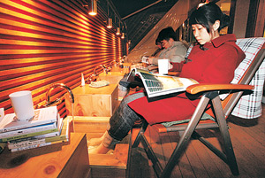 손님은 대부분 대학생이고 30대 초중반의 직장인들도 여럿 눈에 띈다. 족욕이 건강에 좋다는 얘길 들은 인근 대학과 학원 등의 외국인 강사들도 자주 온다고 북 카페 정길호(33) 사장은 귀띔했다. 커피 값(5000원)만 내면 시간 제한 없이 모든 시설을 마음대로 이용할 수 있어 개점 시간인 낮 12시쯤에 들어와 폐점 시간인 자정이 가까워서야 자리를 뜨는 대학생도 꽤 있다고 한다.