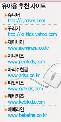 즐겨찾기를 통해 필요한 사이트를 직접 찾아갈 수 있도록 해 준다. 또 스피커와 컬러프린터, 아이들 키에 맞는 컴퓨터 의자, 아동용 마우스, 눈을 보호하기 위한 보안경은 필수다. 유아사이트에서 가장 중요한 것은 콘텐츠다. 아이의 발달 정도를 파악해 해당 연령에 맞게 콘텐츠를 제공하고 있는지 확인한다. 또 어린이가 이해할 수 있을 정도로 사이트에 쉽게 접근할 수 있는지 여부도 중요하다.