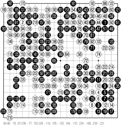 백 최철한 국수(9단) 흑 이창호 9단(241수 끝 흑 불계승)