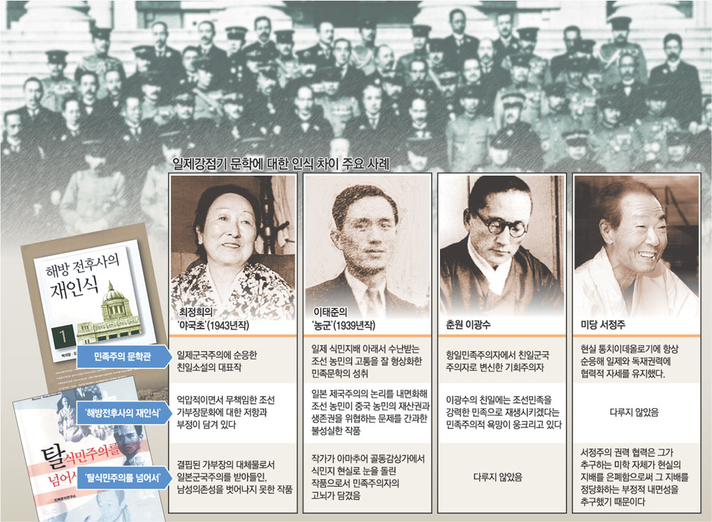 지난주 출간된 ‘해방전후사의 재인식’(책세상)과 ‘탈식민주의를 넘어서’(소명출판)는 일제강점기 문학작품에 대해 민족주의적 해석에서 벗어나야 한다는 문제의식을 공유한다.