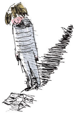 그는 계속해서 신발을 찾았지만 눈은 엉뚱한 곳을 향하고 있었다. 마침내 그의 시선이 자기 발에서 멈추었다. “이게 내 신 맞죠?” 농담을 하고 있는 걸까? 아니면 미친 것일까? “내 신 맞죠? 아닌가요?” “아닙니다. 그건 선생님 발이에요. 신은 저쪽에 있어요.”