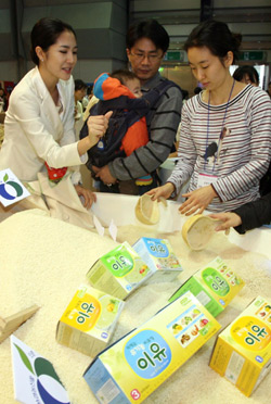 오가닉트리는 유기농 면으로 만든 영유아용 의류를 내놓았고 종근당건강은 유기농 재료를 레토르트식품 형태로 만든 ‘떠먹는 유기농 이유식’을 선보였다.