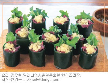 밀레니엄서울힐튼호텔 한식 조리장 김우철(사진) 씨는 “다시마는 여러 용도로 쓰이고 있지만 특유의 ‘깊은 맛’이 장점”이라며 “다시마를 사용하면 다른 재료의 잡냄새를 말끔하게 없앨 수 있다”고 말했다.