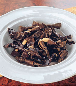 ▽재료=다시마(10×10cm), 잣 2 큰술, 설탕 1 큰술, 식용유 약간