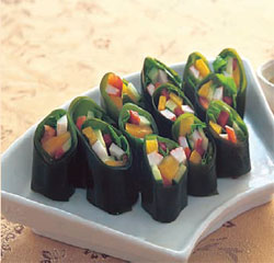 다시마는 밑반찬이나 국물 재료로 지주 사용되지만 밥과의 ‘궁합’도 훌륭하다. 밥에 김 대신 다시마를 두른 뒤 새우젓장, 초고추장, 멸치젓장에 찍어 먹으면 씹히는 맛이 일품이다. 오이 맛살 피망을 넣은 다시마 야채말이도 영양이 풍부한 간식으로 제격이다.
