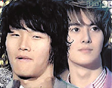 눈 큰 동료 옆에 있는 가수 김종국(위에서부터) 등 누리꾼들은 뜻하지 않은 상황에 맞닥뜨린 스타들의 모습에 기발한 사진 설명을 붙여 ‘굴욕’이라는 유머 코드로 활용한다. 누리꾼들이 인터넷에 올린 사진들이다.