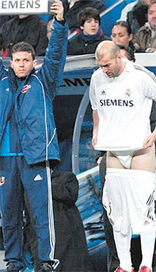 경기장에서 유니폼을 정리하기 위해 바지를 내린 모습이 카메라에 포착된 축구선수 지네딘 지단