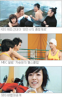 지난달 26일부터 MBC ‘일요일 일요일 밤에’에서 방영된 ‘차승원의 헬스클럽’은 ‘몸짱 되기 8주 프로젝트’라고 불린다. 13년 이상 헬스를 해온 차승원이 체육 선생님이 돼 ‘몸짱’과는 거리가 먼 개그맨 정형돈 이윤석 등에게 기본 스트레칭부터 근육운동, 기구운동 등을 체계적으로 가르친다.