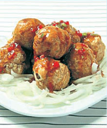 5. 생선살을 동그랗게 완자 모양으로 만들어 튀김가루를 묻힌 뒤 180도로 데운 기름에 넣고 튀겨 낸다.