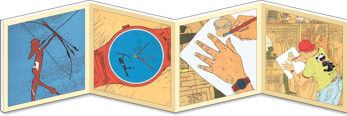 ‘이게 다일까?’는 마치 원근법을 반대로 진행하듯, 한 장을 넘길 때마다 그림이 점점 멀어지며 새로운 그림의 일부가 된다. 활 쏘는 사람의 그림을 한 장 넘기면, 활 쏘는 사람의 그림이 그려져 있는 손목시계가 나오고, 다음 장에서는 그 손목시계를 차고 있는 사람의 손목이 보이는 식이다. 마치 그림으로 ‘끝말잇기’ 놀이를 하는 것 같다. 이렇게 활 쏘는 그림에서 시작된 이 책은 이집트 피라미드, 밀림의 코끼리 여행, 어느 도시의 지하철까지 상상력의 힘을 빌려 종횡무진 넘나든다.