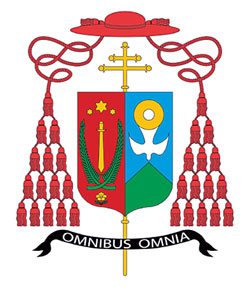 ![]() 정진석 추기경의 신앙과 철학, 사목 목표 등을 상징하는 문장(紋章). 왼편에 있는 별 중 큰 별은 한국 전체를, 좌우의 별은 서울(남한)과 평양(북한)을 상징한다. 무궁화도 우리나라를 나타낸다. 아래 ‘OMNIBUS OMNIA’는 ‘모든 이에게 모든 것’이란 뜻의 라틴어로 사도 바오로의 서한에서 뽑은 정 추기경의 사목 지침이다. 연합뉴스 |