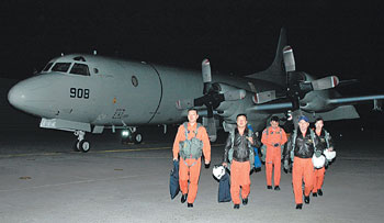 오후 9시경 임무를 마친 P-3C가 경북 포항기지 활주로에 안착하자 대원들은 격려를 주고받으며 서로의 어깨를 두드렸다.