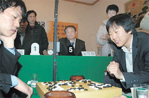 ![]() 중국 출신 여성 기사 루이나이웨이 9단(왼쪽)이 2000년 43기에서 조훈현 9단을 이겨 바둑계를 깜짝 놀라게 했다.